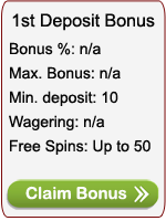 Welcome bonus: 1 free spin for every €1 deposit, with maximum of 50 free spins